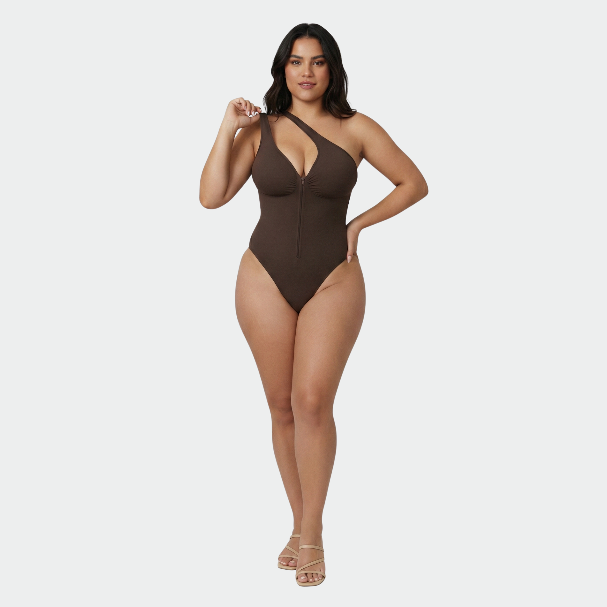Gray Sculpting Zipper Contour Bodysuit