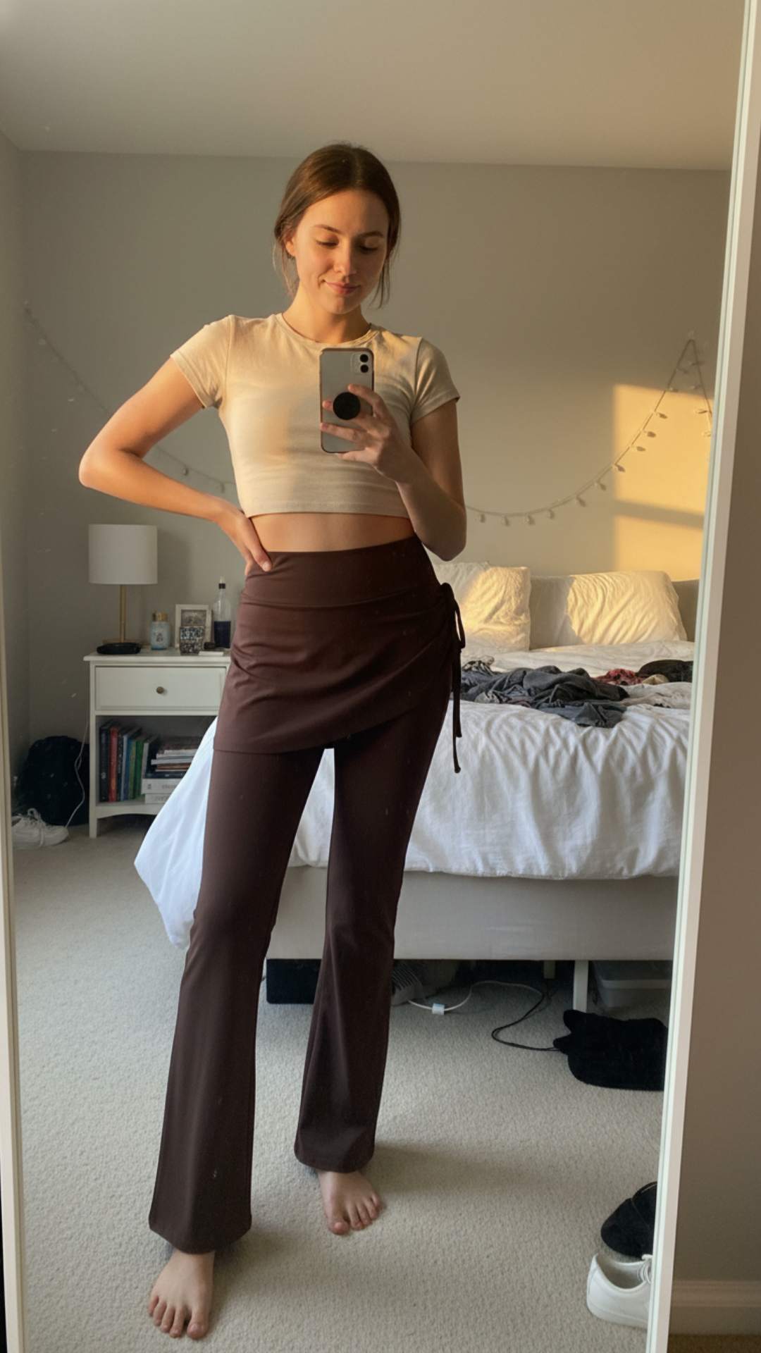 Flared Yoga Pants in Brown with Skirt Accent
